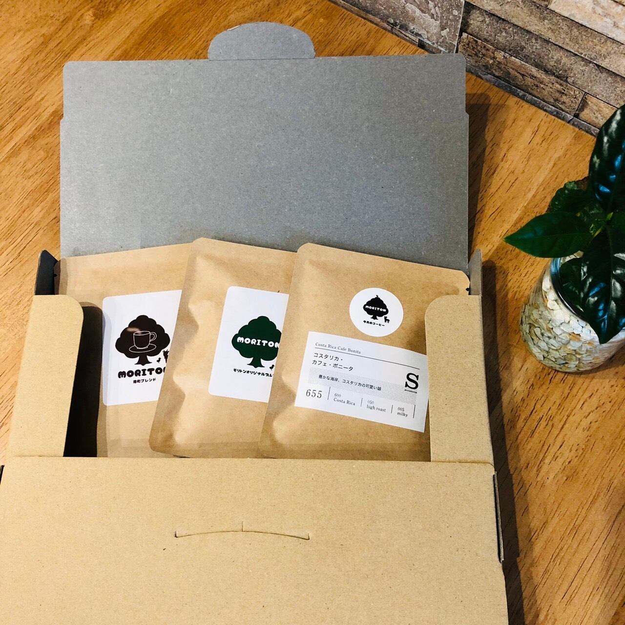 モリトンコーヒー×3、港町ブレンド×3、今月のマンスリーコーヒー×3の9個入りドリップバック飲み比べセットです。